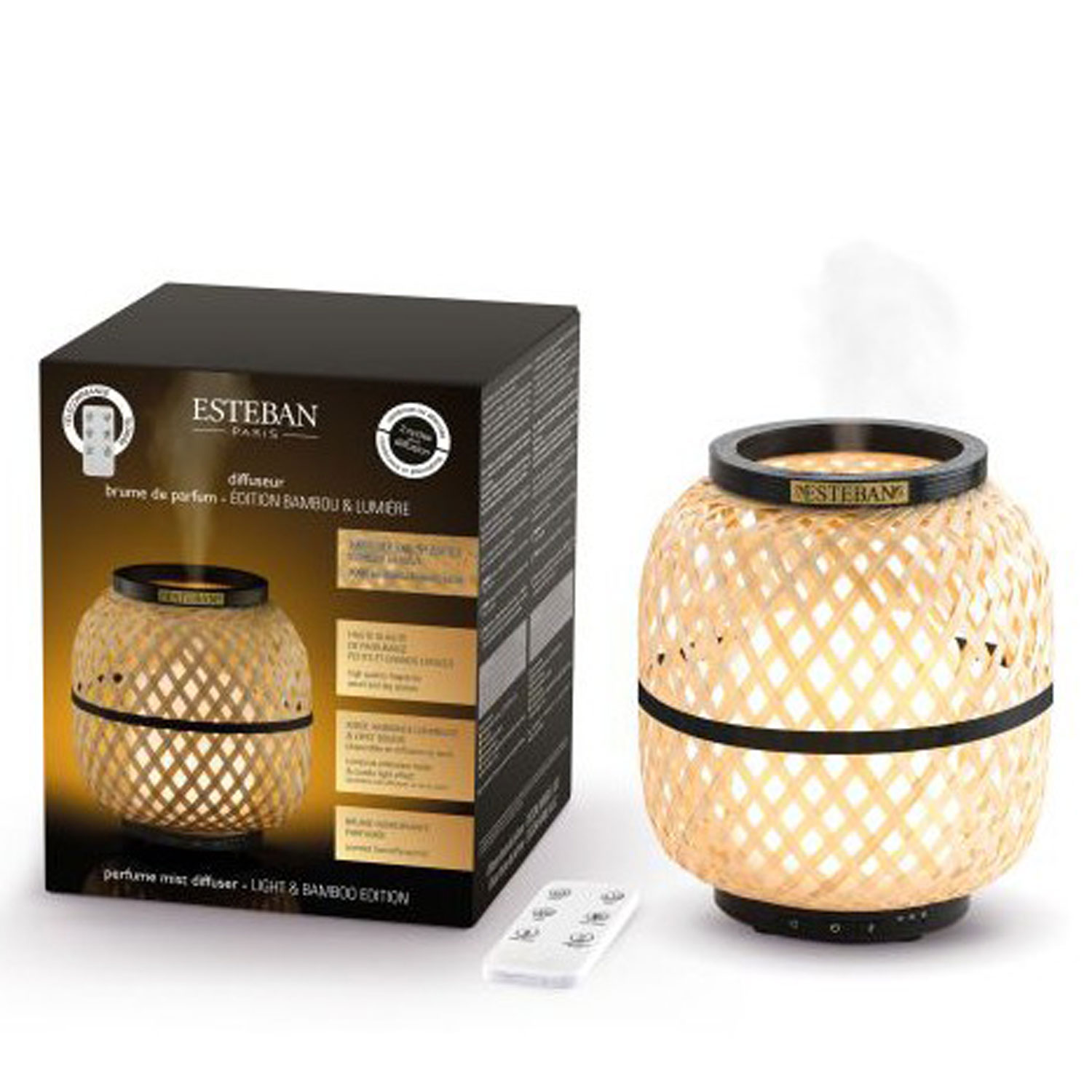 El difusor de perfume Bambou & Lumière, con un elegante diseño de bambú 100% natural, es ideal para perfumar y decorar tu hogar u oficina, creando un entorno cálido de ambiente positivo. Capacidad del depósito máx. 120 ml.