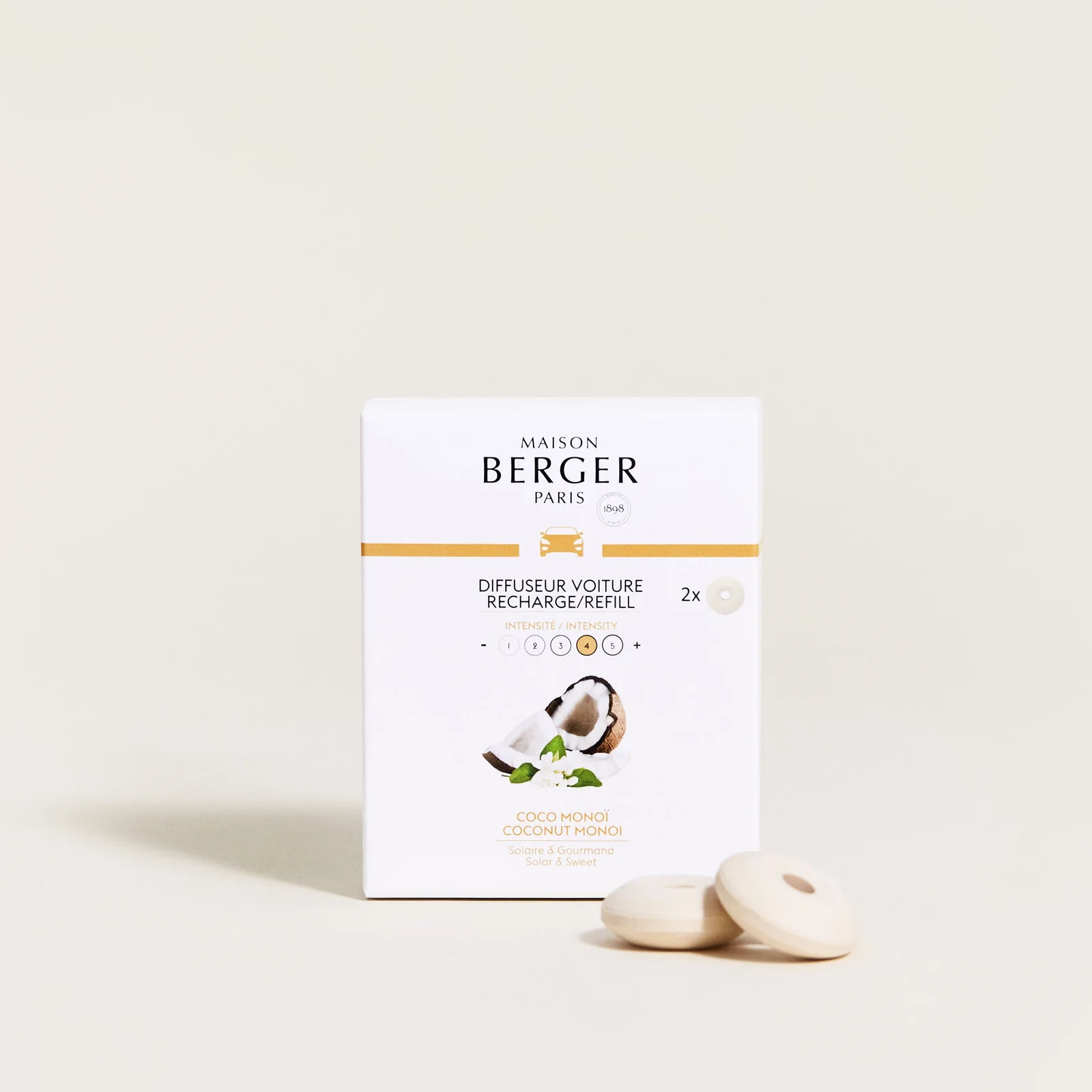 Los aromas veraniegos de Coco Monoï, llenos de vitalidad, iluminarán sus viajes en coche con un aura dulce y soleada.